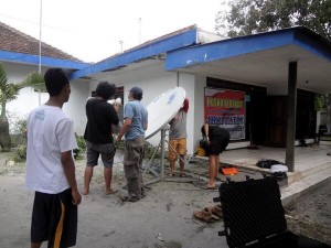 Pemasangan dan Setting Vsat Satelit dari Air Putih untuk support koneksi internet di posko JRKI JATIM (28 Februari 2014)