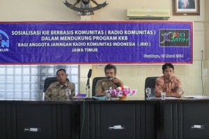 Sebanyak 80 radio komunitas seJawa Timur yang tergabung di Jaringan Radio Komunitas Indonesia ( JRKI ) mendapatkan sosialisasi KIE ( Komunikasi Informasi Edukasi ) dari Badan Kependudukan dan Keluarga Berencana ( BKKBN ) Provinsi Jawa Timur, Senin, ( 10/3 ). Seharian pimpinan rakom mengikuti sosialisasi KIE dalam mendukung program KB berbasis komunitas, acara yang dibuka oleh Direktur Advokasi KIE, Yunus Patrialis, pukul 10.00 wib di gedung BKKBN Jawa Timur mendapatkan sambutan hangat dari penggiat rakom. Dikesempatan itu, Yunus mengharapkan nantinya rakom turut berperan dalam menyampaikan dan memaparkan program – program KB di wilayah komunitasnya, “ saya yakin dengan melakukan pendekatan dua arah dan melakukan revolusi media melalui radio komunitas adalah tepat, “ Ujar Yunus Patrialis Direktur Advokasi KIE. Seusai mendapatkan berbagai materi dan penyuluhan dari nara sumber tentang program – program keluarga berencana, 80 Pimpinan rakom menanda tangani MoU kerjasama untuk pemutaran spot iklan layanan masyarkat ( ILM ) selama 1 tahun hingga akhir Desember 2014. Dan pelaporan pemutaran iklan serta pencairan dana operasional di bagi 3 termin, termin pertama pada bulan Juni mulai tanggal 1 s/d 15, termin kedua bulan September tanggal 1 s/d 15, dan termin ke tiga, bulan Desember tanggal 15 s/d 25.