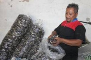 “Sakarang di rumah anyaman bambu ini, sudah berisi 8.000 baglog (median palstik yang berisi serbuk gergajian kayu sengon sebagai tempat benih jamur kuping). Ribuan benih itu kami beli dari daerah Jawa Tengah. Saya dibudidaya sendiri. Dari benih 8.000 bisa menghasilkan 6 kuintal jamur kuping yang sudah dikeringkan dan sial jual,” imbuhnya.